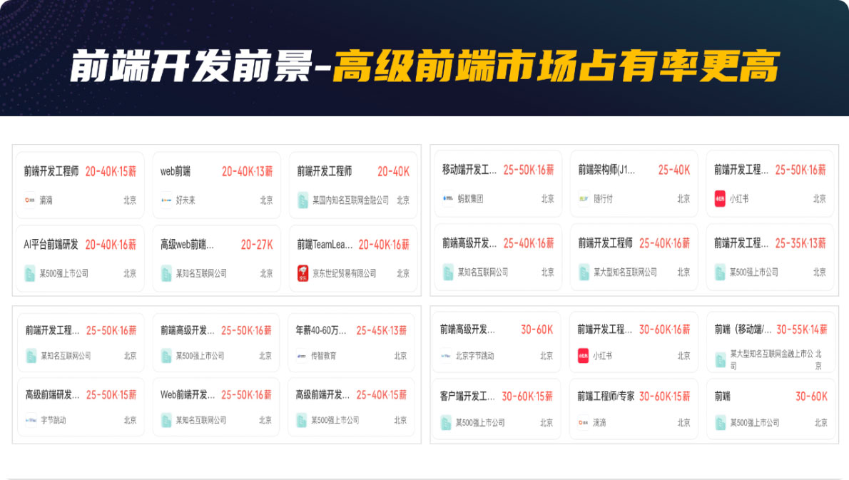 6、可從事崗位:《Web 前端開發(fā)工程師》、《高級前端工程師》、《全棧開發(fā)工程師》、《小程序開發(fā)工程師》、《Uniapp 開發(fā)工程師》