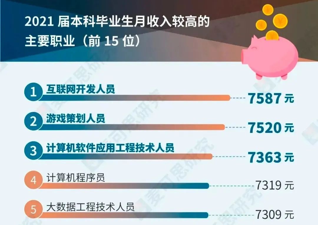 根據(jù)麥可思數(shù)據(jù)顯示:無論是本科畢業(yè)生還是高職畢業(yè)生,互聯(lián)網(wǎng)、計算機專業(yè)畢業(yè)生薪資都名列榜首。