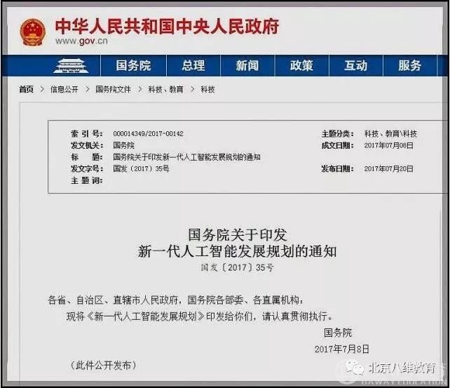 國(guó)家層面在2017年就發(fā)布了《關(guān)于新一代人工智能發(fā)展規(guī)劃的通知》,內(nèi)容就是大力發(fā)展人工智能技術(shù)和教育: