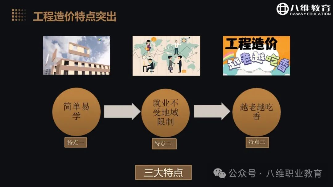 越老越吃香:建筑專業(yè)工程造價崗位不受年齡限制,隨著從業(yè)經(jīng)驗(yàn)的增加,職業(yè)的就業(yè)壁壘逐漸增加,核心競爭力自然變強(qiáng)。八維建筑專業(yè)以獨(dú)特的教育教學(xué)模式結(jié)合八維創(chuàng)新教育理念,不斷升級迭代工程造價專業(yè)課程,降低學(xué)習(xí)門檻;通過實(shí)訓(xùn)項(xiàng)目拔高學(xué)生專業(yè)技術(shù)壁壘,形成核心競爭力。