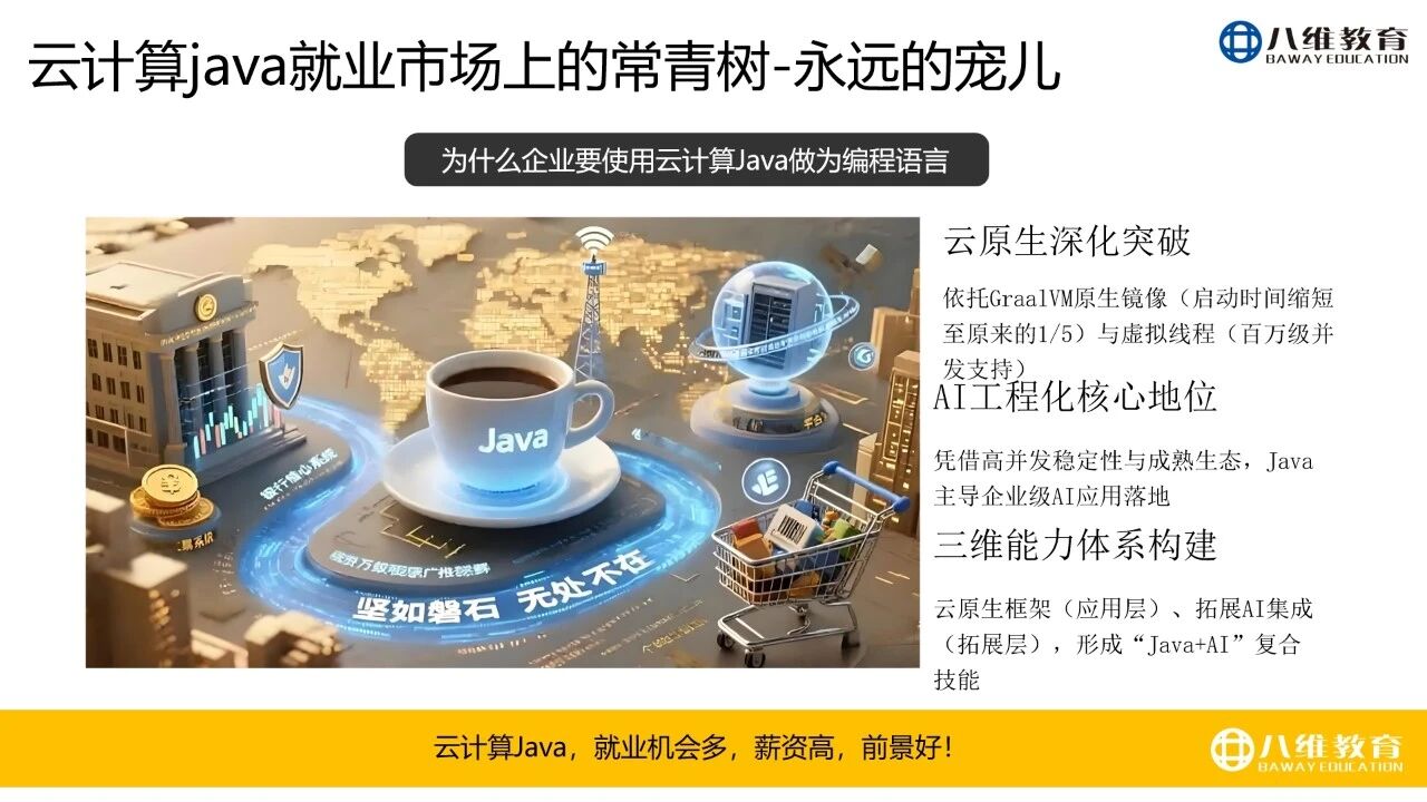 2026年,技術(shù)變革浪潮席卷全球。AI、云計(jì)算和機(jī)器人成為全球產(chǎn)業(yè)升級(jí)的 “黃金三角”—— 全球人工智能市場(chǎng)規(guī)模將突破 9000 億美元,云計(jì)算市場(chǎng)預(yù)計(jì)在2027年達(dá)到2.1萬億元;Java持續(xù)穩(wěn)居編程語言前三,78%的世界500強(qiáng)企業(yè)依托其構(gòu)建核心系統(tǒng)。