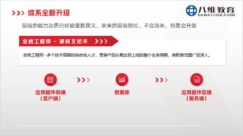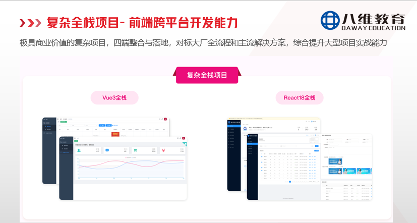 面對就業(yè)市場的嚴峻挑戰(zhàn)與企業(yè)用人標準的持續(xù)提高,2026年,八維大學(xué)生短訓(xùn)課程體系也即將完成關(guān)鍵一躍:在深化前端技術(shù)的基礎(chǔ)上,全面進階為“大前端+全棧”雙向并行的培養(yǎng)體系,幫助學(xué)子解鎖未來更多可能。