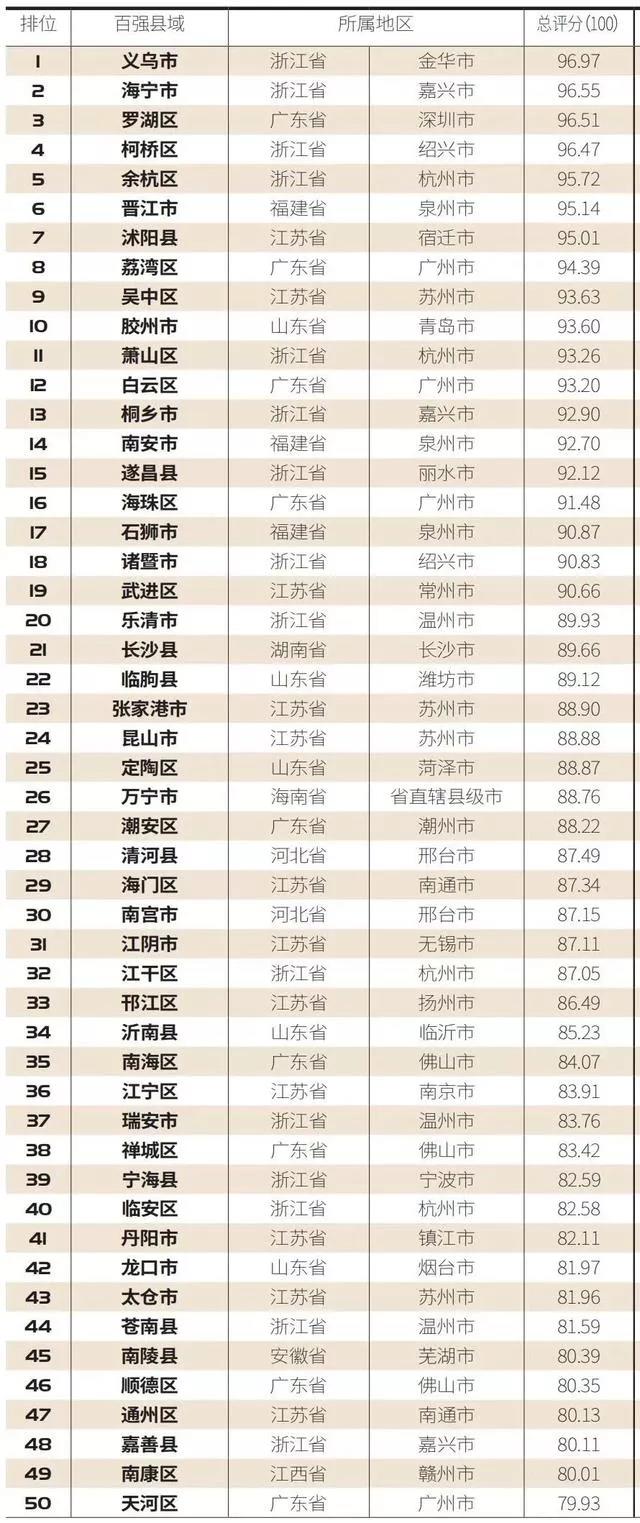 近日,“2021中國(guó)縣域電商競(jìng)爭(zhēng)力百?gòu)?qiáng)榜”出爐了。在這份榜單上,共有19個(gè)省份的縣域榜上有名:浙江省17個(gè),廣東省、江蘇省各13個(gè),這3個(gè)省份成為中國(guó)縣域電商競(jìng)爭(zhēng)力最優(yōu)省份。河北省、山東省各8個(gè),江西省、山西省各6個(gè),福建省5個(gè),這5個(gè)省份構(gòu)成了第二梯隊(duì)。