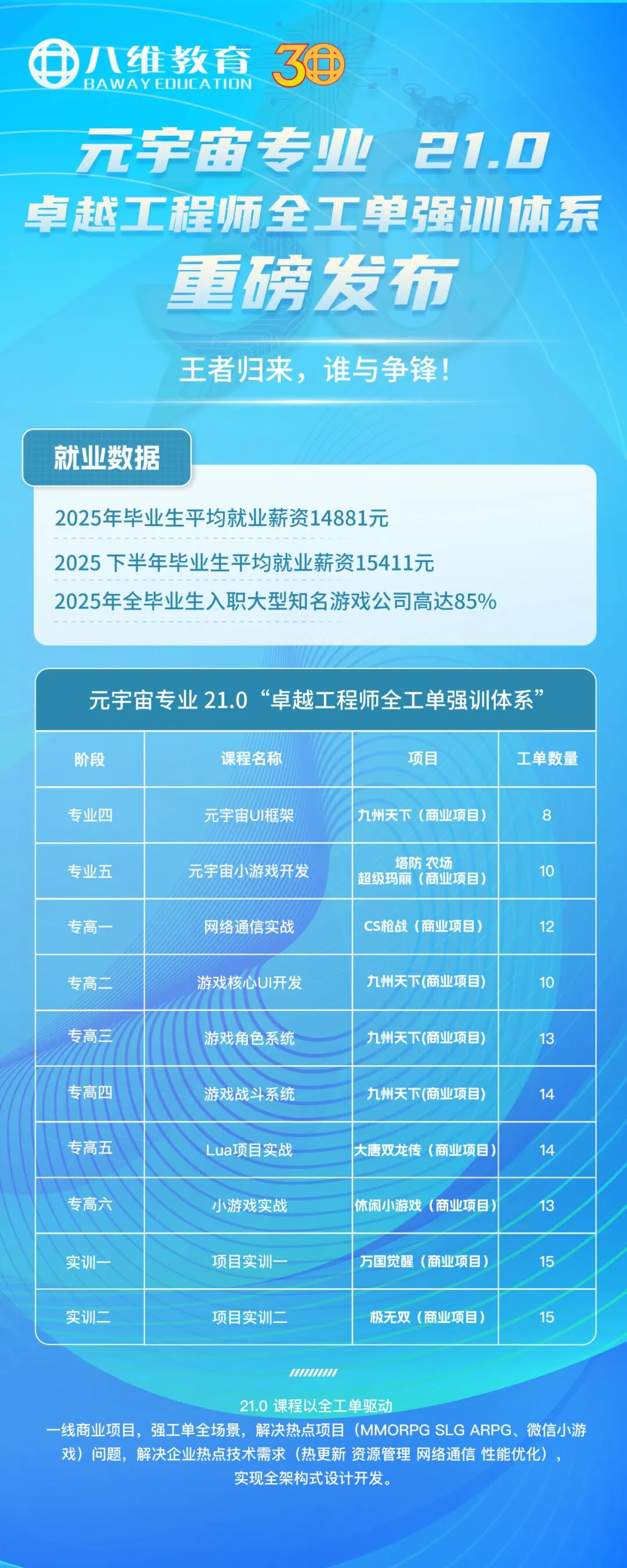 為深度對接國家“十五五”規(guī)劃戰(zhàn)略方向,積極響應“人工智能+”行動號召,助力新產(chǎn)業(yè)場景的大規(guī)模落地應用,八維教育正式推出21.0卓越工程師全工單強訓體系。