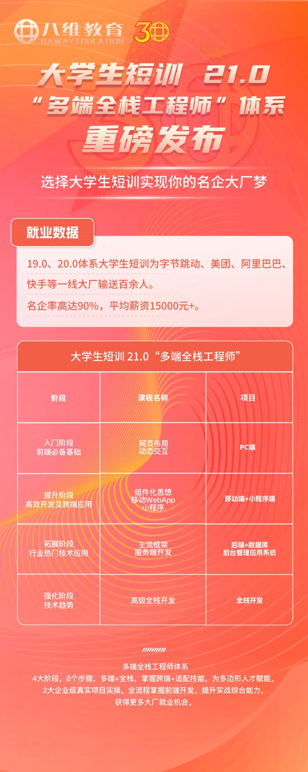 全棧開發(fā)專業(yè)高需求、高含金量的核心技術和項目課程設計,助力學子精準對標優(yōu)質(zhì)崗位,成為企業(yè)爭搶的高技能人才,穩(wěn)健開啟成功之門。