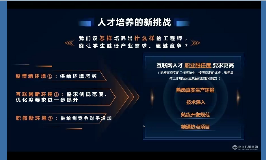 八維的實(shí)訓(xùn)項(xiàng)目,來(lái)自真實(shí)的企業(yè)一線,都是熱門的技術(shù)應(yīng)用,還原了企業(yè)生產(chǎn)流程。學(xué)生經(jīng)歷了這些項(xiàng)目的歷練,積累了扎實(shí)的工作經(jīng)驗(yàn),練就了舉一反三的應(yīng)用能力,也就滿足了崗位的勝任度。這樣的技術(shù)應(yīng)用型人才,能夠快速上手,對(duì)接工作項(xiàng)目,自然深受企業(yè)青睞。