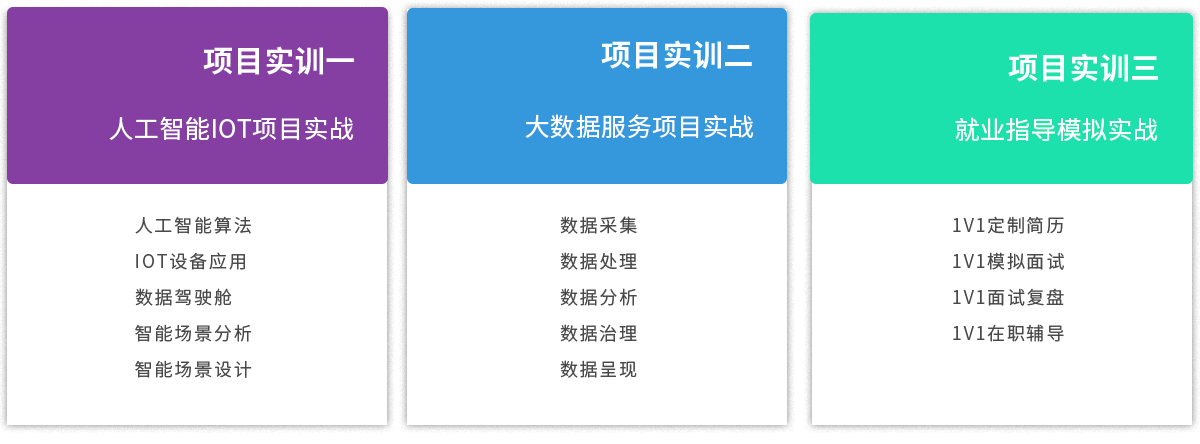 課程涵蓋了300多項(xiàng)技術(shù)點(diǎn)和30多種常用工具 的教學(xué),助力學(xué)生掌握新的產(chǎn)品開(kāi)發(fā)技術(shù)。同 時(shí),課程還結(jié)合了熱門行業(yè)項(xiàng)目,如AI、IOT、 大數(shù)據(jù)服務(wù)等,讓學(xué)生在實(shí)訓(xùn)中鍛煉技能。