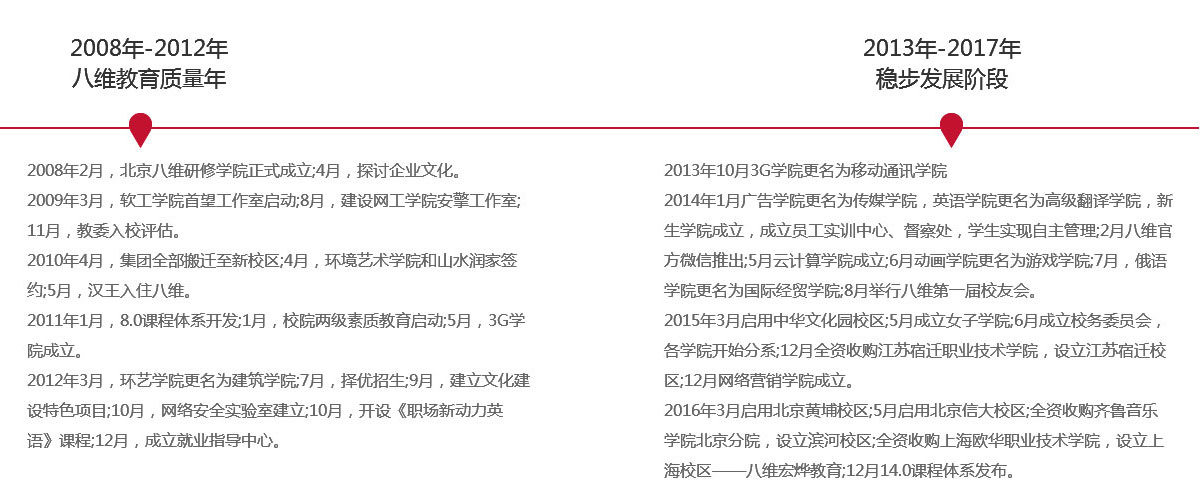 八維教育始終秉承“創(chuàng)新教育,引領(lǐng)未來”之使命,堅(jiān)持“以市場需求為導(dǎo)向,以崗位要求為標(biāo)準(zhǔn),以優(yōu)質(zhì)就業(yè)為目標(biāo)”的課程體系開發(fā)原則。與時(shí)俱進(jìn)地開設(shè)了低空技術(shù)與工程專業(yè)、游戲?qū)I(yè)元宇宙方向、游戲?qū)I(yè)鴻蒙方向、云計(jì)算專業(yè)、人工智能專業(yè)計(jì)算機(jī)視覺方向、人工智能專業(yè)自然語言方向、網(wǎng)絡(luò)工程專業(yè)、移動通信專業(yè)測試方向、網(wǎng)站工程專業(yè)、大數(shù)據(jù)專業(yè)、傳媒專業(yè)、建筑專業(yè)、國際新媒體專業(yè)、全棧專業(yè)開發(fā)方向、全棧專業(yè)產(chǎn)品方向十五大前沿專業(yè)方向,龐大的實(shí)訓(xùn)項(xiàng)目庫涵蓋國內(nèi)眾多熱門項(xiàng)目和前沿技術(shù),賦予學(xué)生豐富的崗位能力和從業(yè)經(jīng)驗(yàn),為我國互聯(lián)網(wǎng)行業(yè)、高精尖企業(yè)、獨(dú)角獸公司以及國企、央企等輸送了大批高端技能人才。
